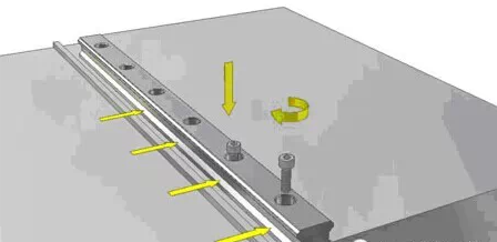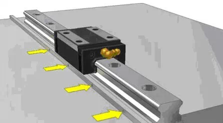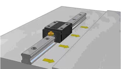2.將主軌輕輕安置在床臺上,使用側向固定螺絲或其他固定治具使線軌與側向安裝面輕輕貼合。 3.由中央向兩側按順序將滑軌的定位螺絲稍微旋緊,使軌道與垂直安裝 面稍微貼合。順序是由中央位置開始向兩端迫緊可以得到較穩定的精度。垂直基準面稍微旋緊后,加強側向基準面的鎖緊力,使主軌可以確實貼合側向基準面。 4.使用扭力扳手,依照各種材質鎖緊扭矩將滑軌之定位螺絲慢慢旋緊。 5.使用同安裝方式安裝副軌,且個別安裝滑座至主軌與副軌上。 6.輕輕安置移動平臺(table)到主軌與副軌的滑座上。 7.先鎖緊移動平臺上的側向迫緊螺絲,安裝定位后將在依照下列順序進行 直線導軌產品廣泛應用于各種自動化設備,如電腦繡花機,激光雕刻、PCB鉆孔、絲網印設備,SMT設備、半導體生產設備,自動化夾具,超聲波焊接設備、噴繪設備、噴涂設備,印刷設備,醫療器械、木工機械,玻璃機械,機械手,水晶磨球機,三座標測繪儀,火花機、線切割機械、數控機床、磨床等機加中心,要求定位精度高的裝置,各種生產線維修、設備改造等領域。作為精密定位部件,可獲得緊湊、省時省力、可靠、可互換等優質效果。 |